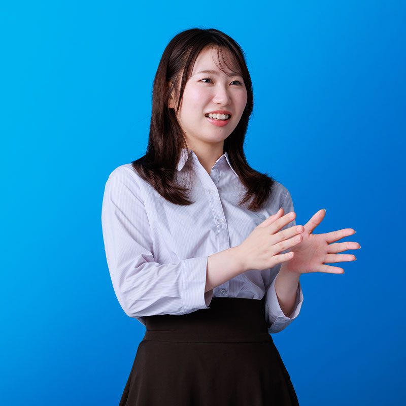 学生時代はマーケティングを専門とし、消費者心理や統計学、経営の基本を学びました。学業以外ではインターンシップで広報活動を行い、社員紹介記事や対談記事の企画・作成・投稿を担当。また、ブライダルのアルバイトで披露宴コンシェルジュとしてゲスト対応を行い、コミュニケーションスキルを磨きました。この経験は新入社員研修のグループワークで生きました。